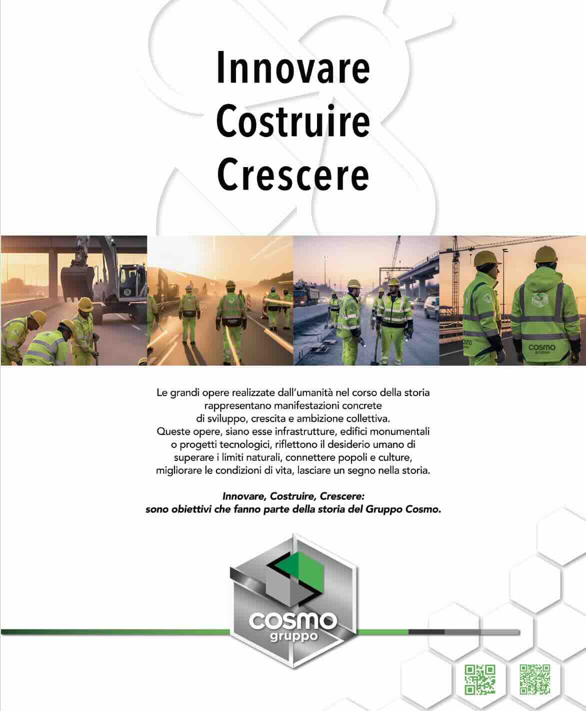 Innovare. Costruire. Crescere. Tre termini che sembrano il mood su cui si è sviluppata l’umanità. E che rappresentano anche gli obiettivi su cui si fonda la storia di Cosmo Gruppo, l’azienda noalese che ha appena oltrepassato il 65^ anno di attività. “Innovare. Costruire. Crescere” è lo slogan della campagna mediatica...